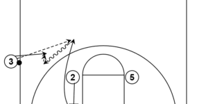 Player 3 has the ball. Player one curls to the paint. Player 2 goes into the corner. …