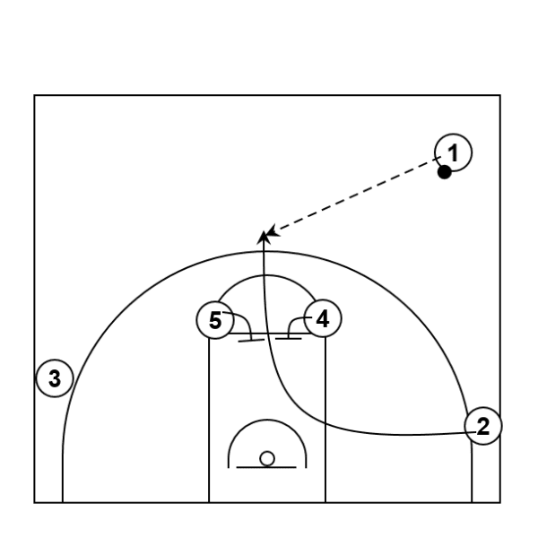 After the pass, the player cuts to the post and gets a hand-off pass for a layup.